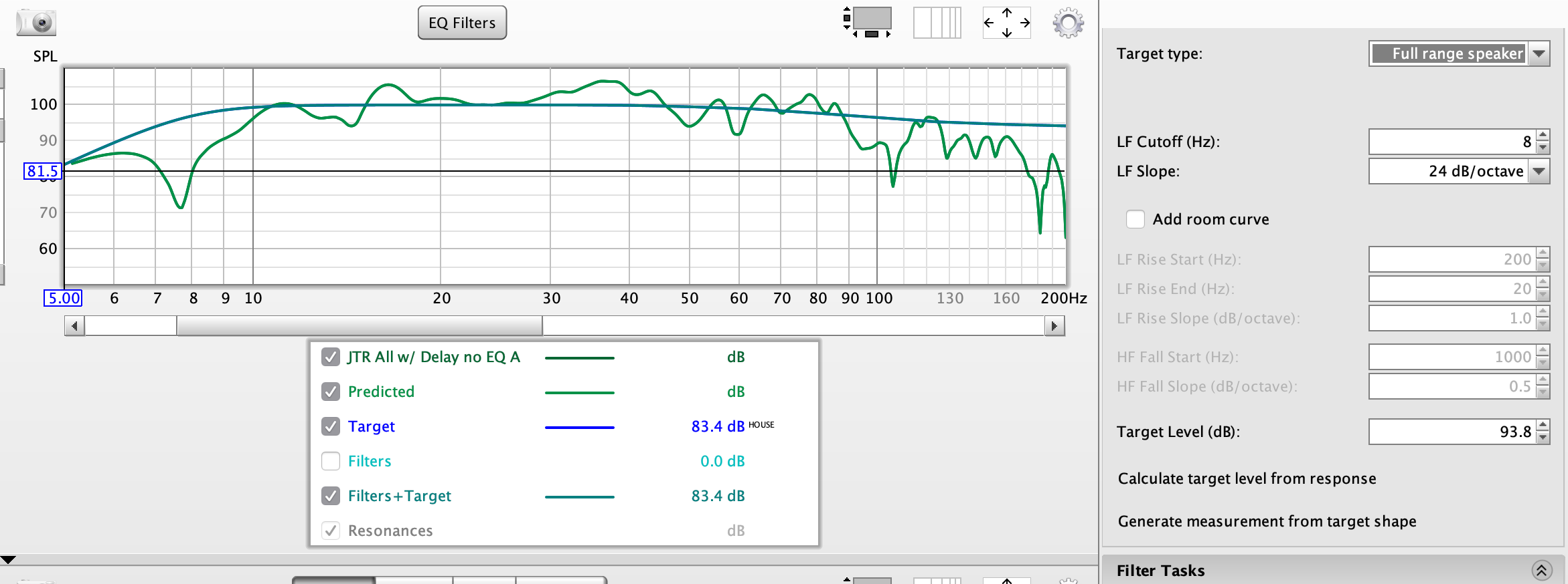 We'll then want to adjust the "Target Level" to find nice middle of the current measured response: