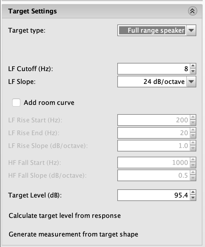 For EQ target, I'll either use Full Range or Subwoofer - depending on the application and goals.